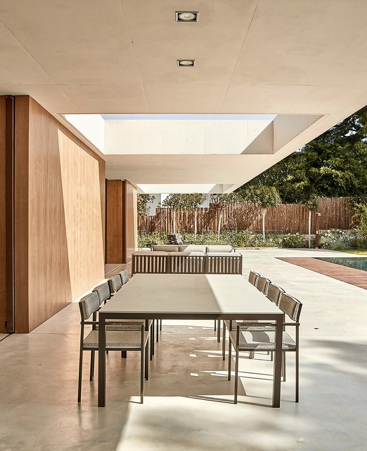 The outdoor lounge is the perfect place to gather with family and friends for drinks or conversation, and it offers a shaded respite from the midday sun. As the sun sets, the atmosphere becomes even more magical, with the sky turning brilliant shades of orange and pink—a stunning backdrop for an evening spent outdoors.